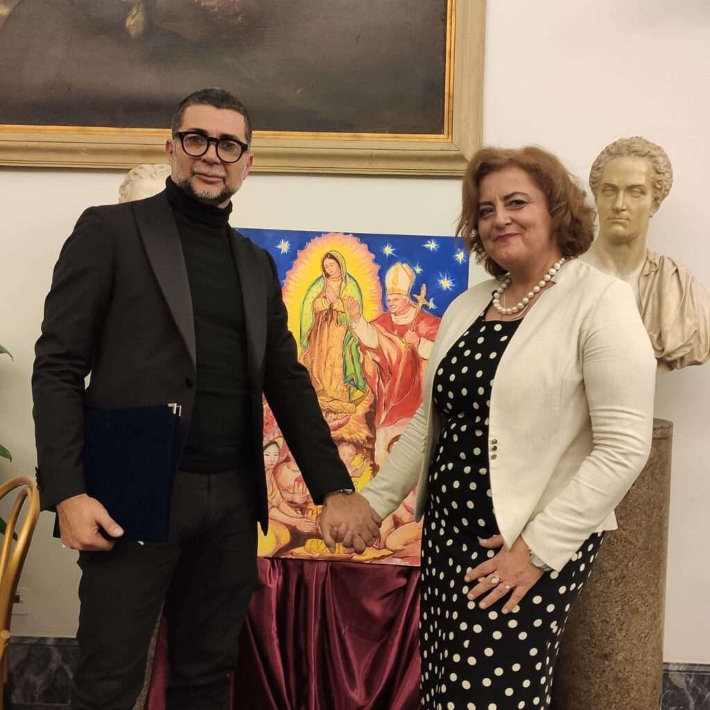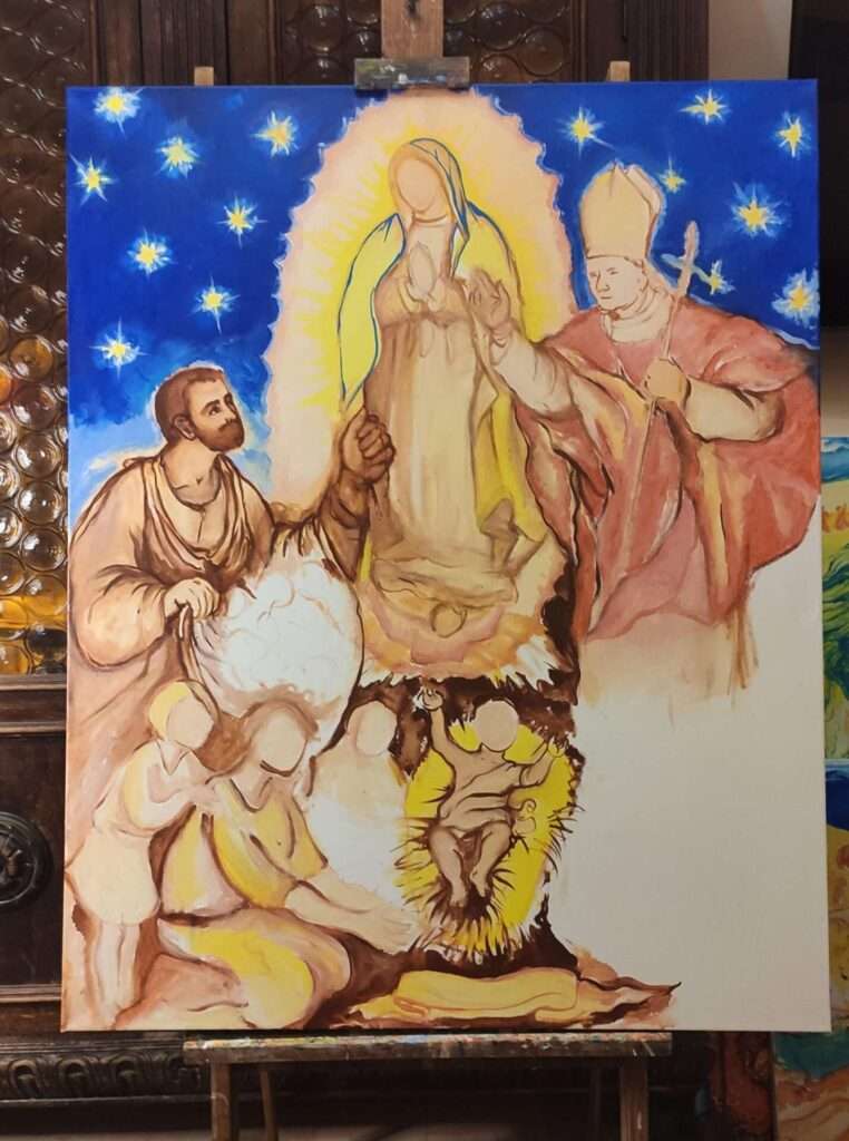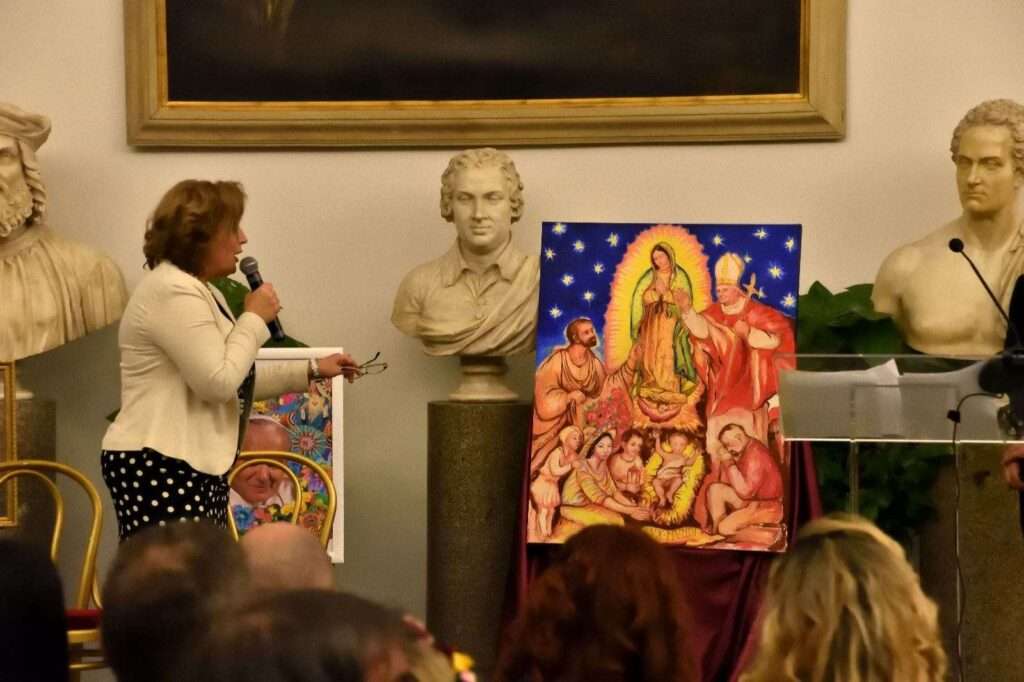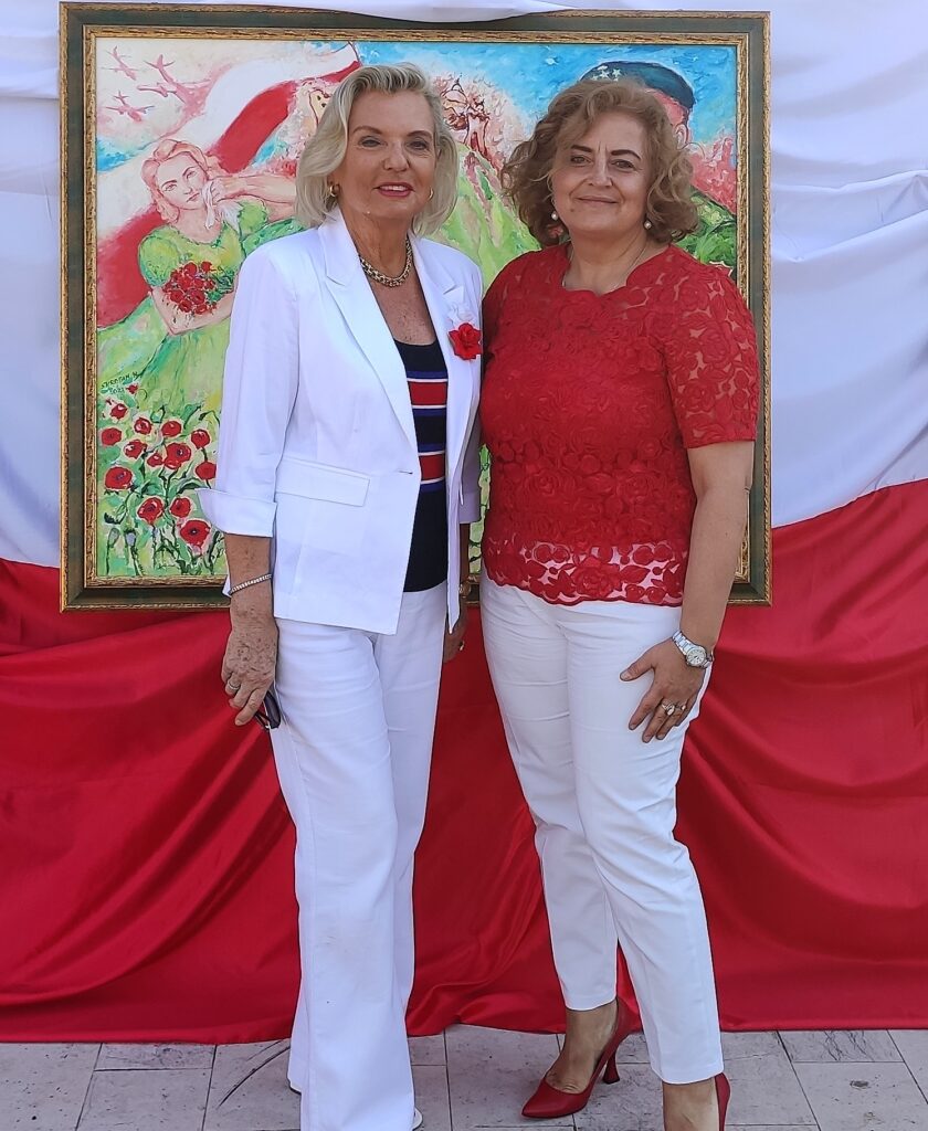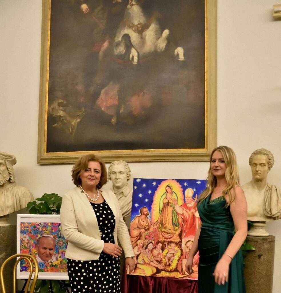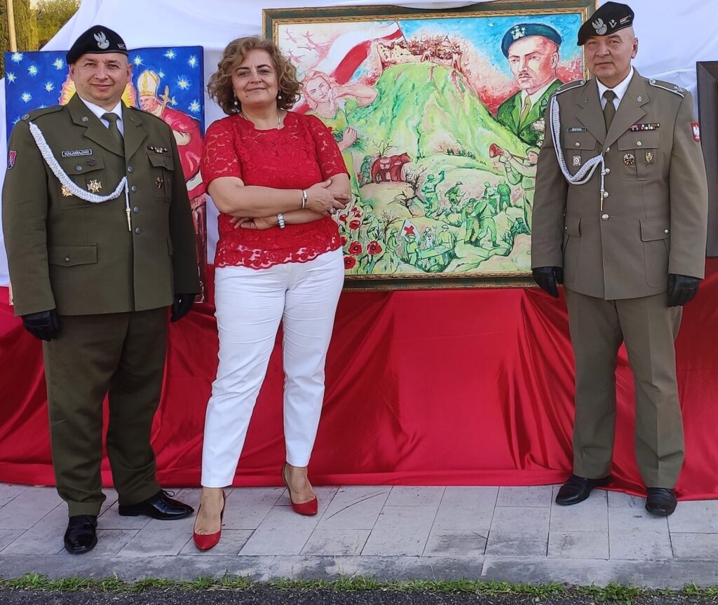 4. Piace menzionare il fatto che HALINA ha avuto l’occasione e il grande onore di presentare quest’opera in esposizione al Santuario della Madonna del Divino Amore per la festa della Polonia Romana (6 maggio del corrente anno). In tale circostanza La battaglia di Montecassino è stata presentata all’Ambasciatrice della Polonia in Italia, Anna Maria Anders, figlia del Generale Wladyslaw e dell’amata Irena.