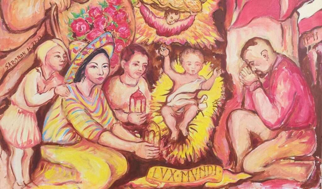 2. L’opera di HALINA SKROBAN, artista di orini polacche trasferitasi in Italia all’inizio degli anni Novanta, costituisce un degno, elevato omaggio in termini pittorici a un sì grande épos di eroismo e umanità. Il quadro (La battaglia di Montecassino, realizzato nel 2021) didimensioni e valore museale (120×100, olio su tela), riesce a fondere in una felice visione sincronica natura, cultura e storia : tutto si accentra attorno alla fatale collina che fu scenario della battaglia fino al momento finale rappresentato dalla bandiera bianca e rossa nastriforme piantata sulle macerie fumanti della Sacra Abbazia benedettina, bandiera che si srotola sino all’estremo margine sinistro della tela (rispetto al rimirante) con un movimento sinuoso impresso da quello che, con vaga reminiscenza benjaminiana, potremmo intendere come “il vento della Storia”.