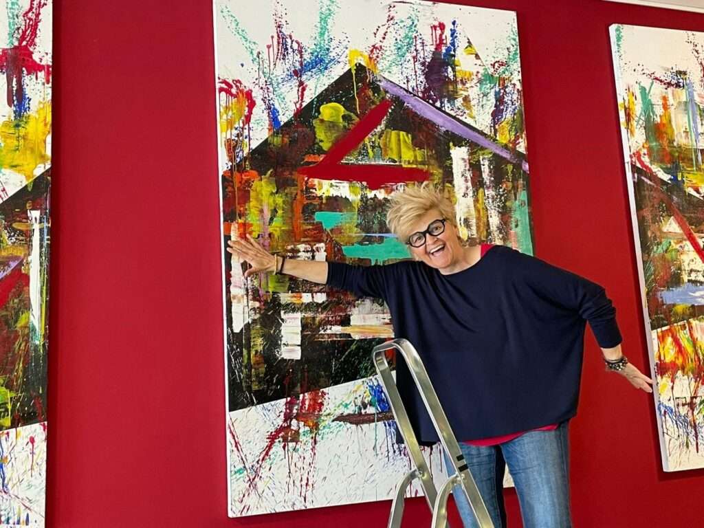 La sua decisione di far dialogare il suo astrattismo con immagini iconografiche legate al mondo dell’arte a 360 gradi la porta a creare senza il timore di rispettare l’immagine retrostante, che alla fine del quadro, sarà riconoscibile da dettagli non coperti , ma impregnata della creatività e dalla miscelanza dei colori dell’artista veneta..