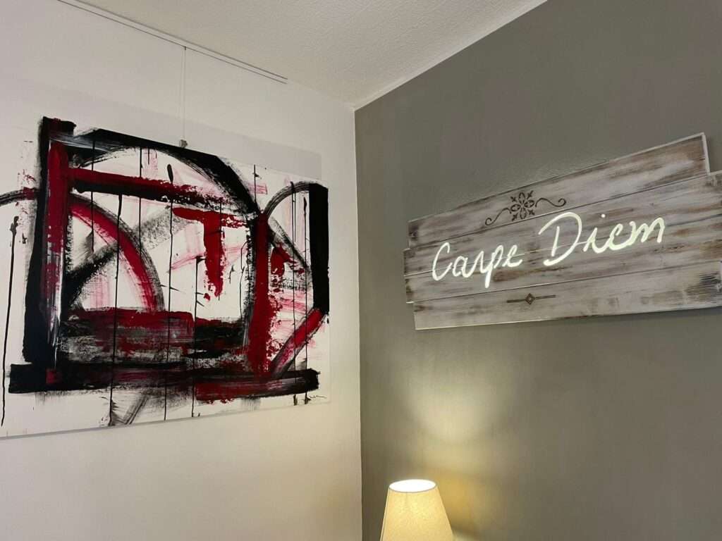 Sandra Menoia ha iniziato da giovanissima a dipingere olio su tela paesaggi, nature morte, ma ha capito presto che questo stile non le apparteneva, a quel tempo non considerava nemmeno l’arte astratta, adorava l’impressionismo.