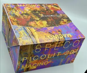 L’ opera ” PIANETA NEVOSO” è stata scelta affinchè potesse trasformarsi in un meraviglioso contenitore all’interno del quale sono stati inseriti diversi prodotti eno-gastronomici scelti tra le eccellenze italiane.