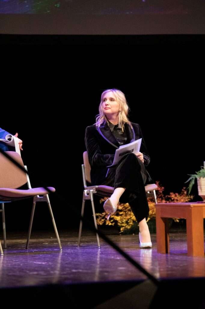 La Ferruzzi ha svelato il suo ultimo libro “Voilà Cesarina” accompagnata dallo stile delle creazioni dello stilista Camaiani.