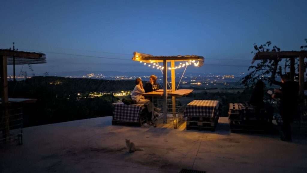 Il menu è contenuto e per questo cambierà ogni due mesi, mantenendo però alcuni classici quali i pici al ragù di carni bianche e il Peposo dell’Impruneta, anche in estate, una scommessa, rivolta soprattutto ai visitatori che vengono da lontano. Grande attenzione, in linea con la filosofia aziendale, è riservata alle proposte vegane e vegetariane e a richieste ad hoc legate a norme religiose.