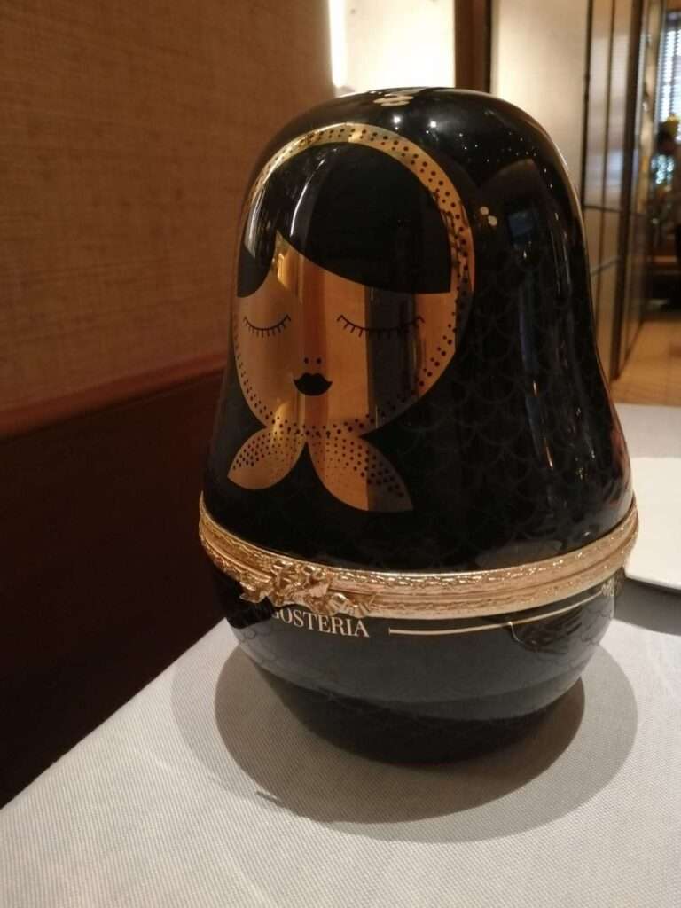 La Langosteria offre infatti un ambiente intimo, come il Salotto di casa, aperto solo la sera. Un ambiente avvolgente con piatti vecchio Ginori e alcune manifatture legate al peltro dell’azienda bresciana Cosi Tabellini. In tavola anche la Matrioska che contiene il caviale, una preziosità nata dall’ispirazione di una borsa Chanel.