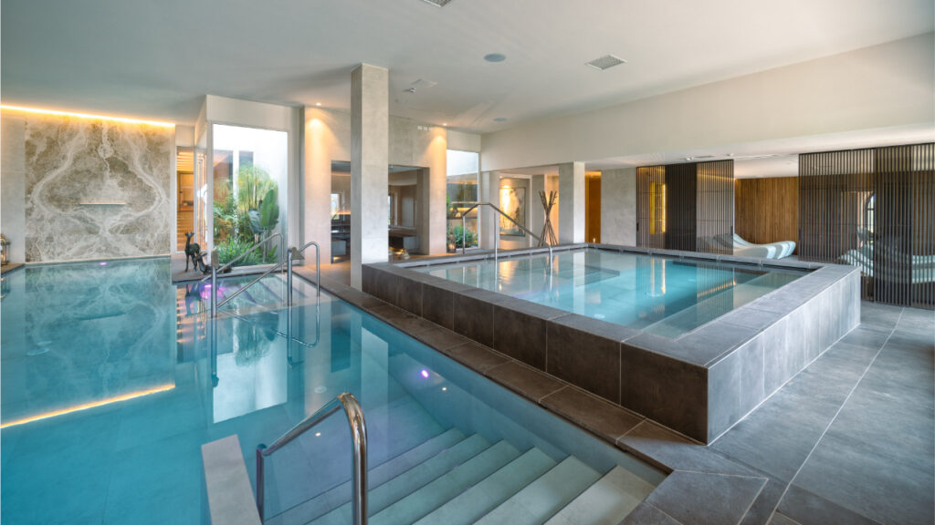Gli arredi sono dell’architetto romano Antonio Marincola e del suo studio fondato nel 2025 Marincola Architects che ha scelto uno stile lineare, molto raffinato di modernità classica con toni di grigio perla, blu intenso appena polveroso, anche nei divani di velluto, e inserti di colore; la carta da parati richiama sui toni del grigio il Grand Tour, evocando il richiamo internazionale che suggerisce l’Italia e la cultura del viaggiare.