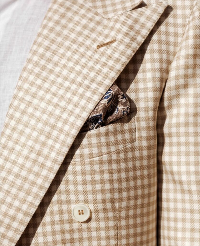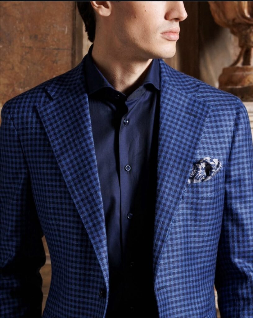 This dedication to quality results in impeccably crafted suits, made exclusively from the finest fabrics sourced from the country’s most prestigious textile mills.