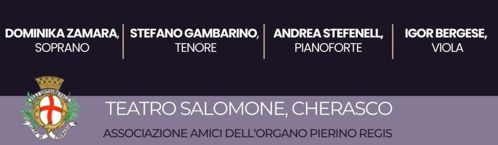 Come nella premessa il 25 febbraio sarà il giorno designato, l’inizio della stagione concertistica dell’Associazione Amici dell’organo Pierino Regis, alle ore 21:00 presso il Teatro Salomone di Cherasco. Sul palco: Dominika Zamara soprano, Stefano Gambarino tenore, Andrea Stefenell pianoforte, Igor Bergese viola, quest’ultimo ne è anche l’ideatore. Questi gli artisti che daranno vita non solo alla musica, quello che potremmo definire il balsamo dell’anima, ma anche faranno rivivere una parte della storia della città di Cherasco.